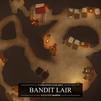 ![Bandit Lair [26x22] | Battlemap Pack](https://img.itch.zone/aW1nLzI2Mjg5MTU4LnBuZw==/original/foLzZJ.png)